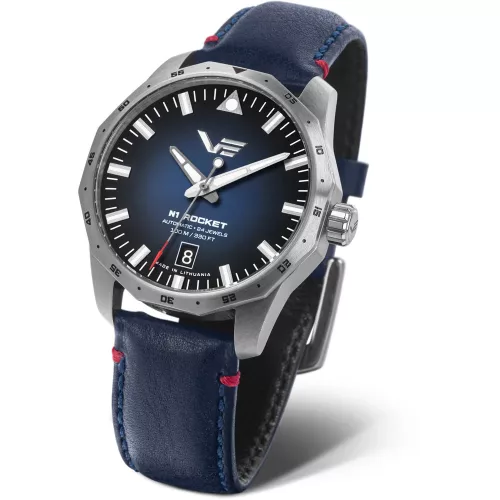 Vostok Europe NH35-125A748-L N-1 Rocket Compact – 39 mm automata, kék számlap, bőr szíjjal, 100 m vízálló