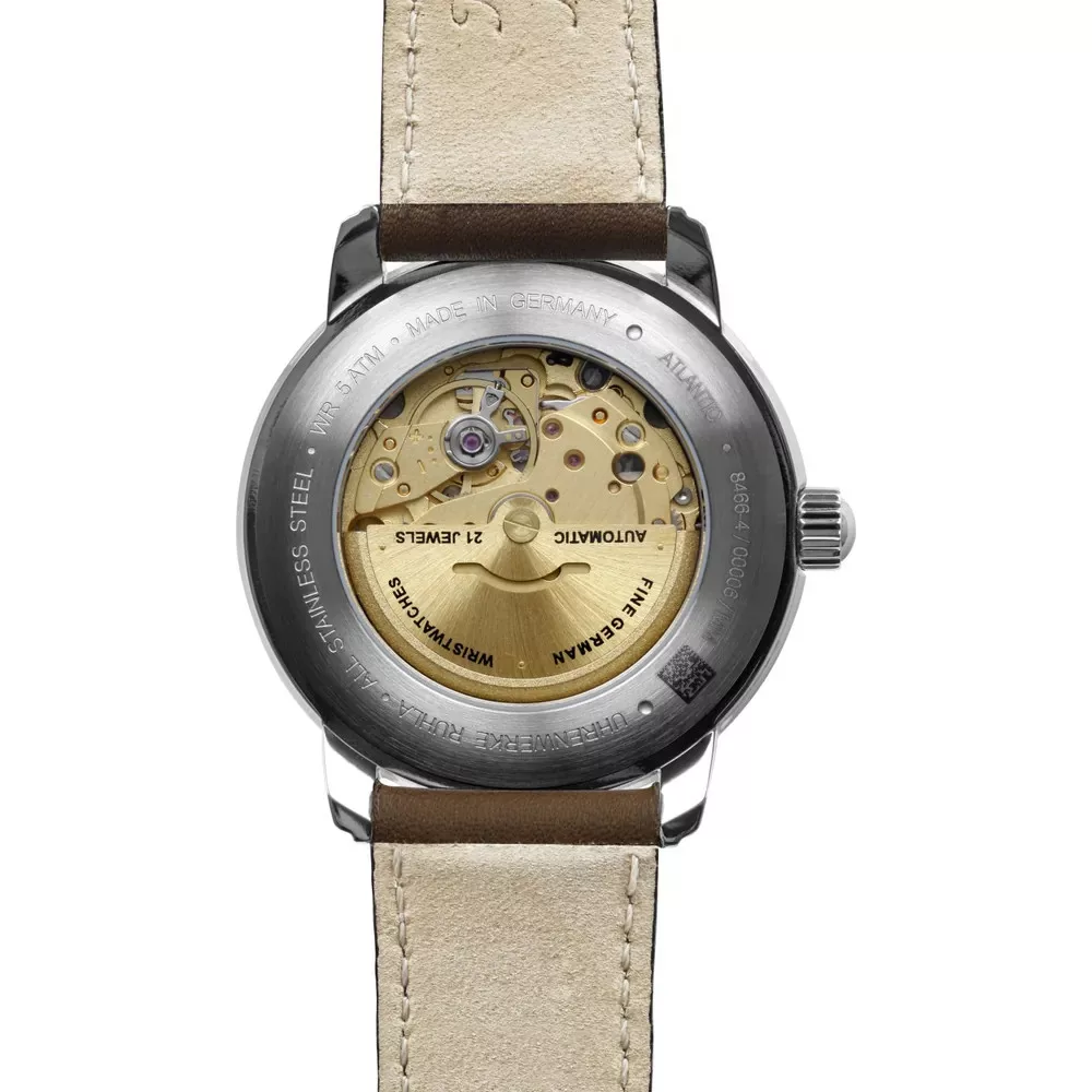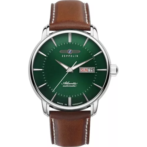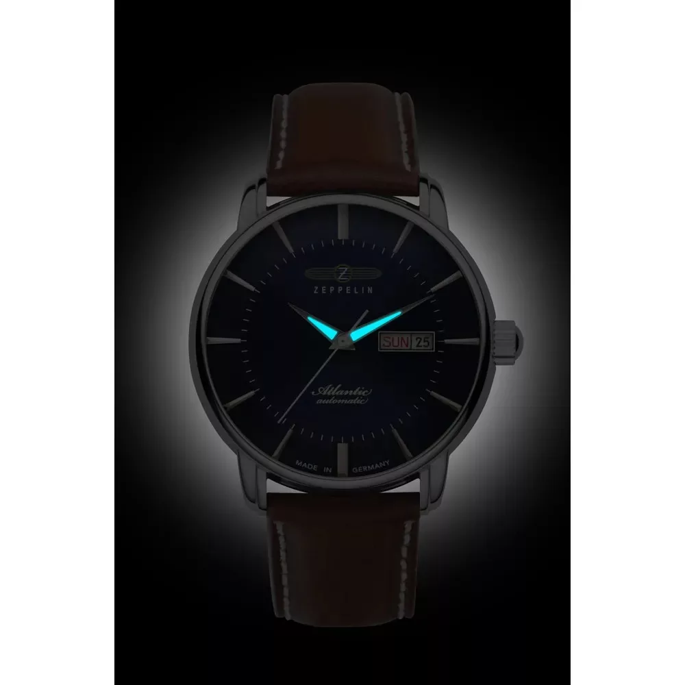 A Zeppelin Atlantic 8466-4 automata férfi karóra a legendás Atlantis-átkelések és a léghajózás atmoszféráját idézi meg – formatervezésében és műszaki tartalmában egyaránt. A rozsdamentes acél tok kb. 40 mm átmérőjű és kb. 13 mm vastag, így arányos, könnyen viselhető eleganciát nyújt.