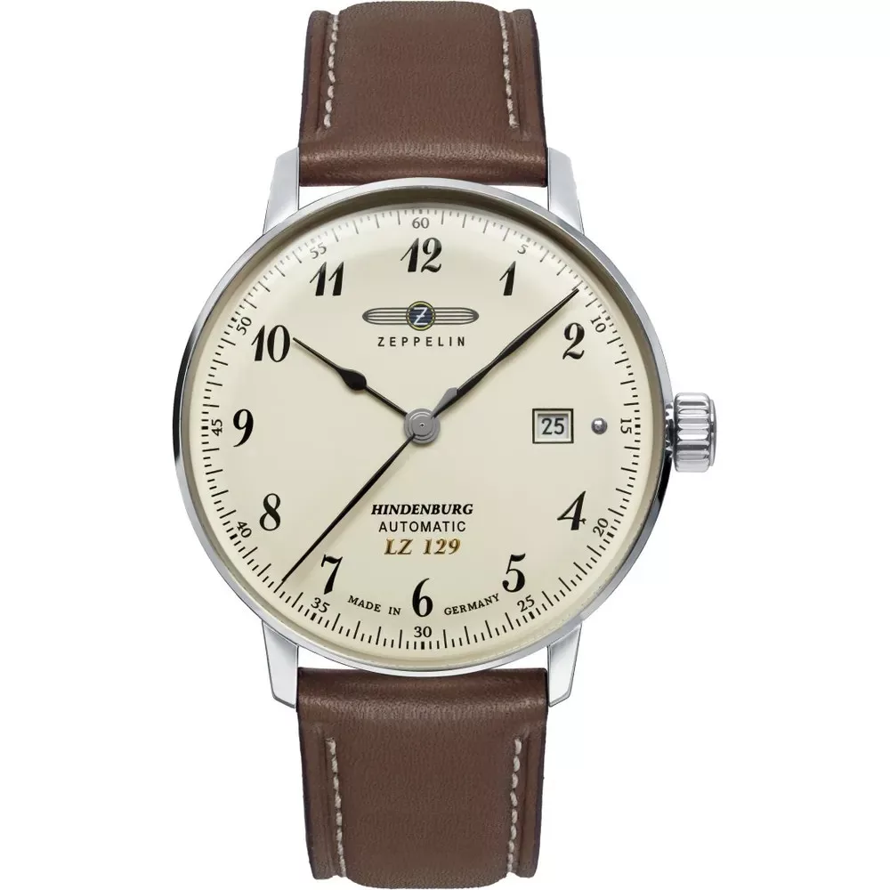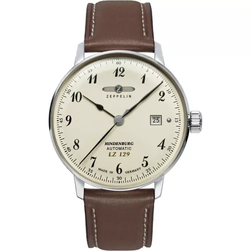 A Zeppelin LZ129 Hindenburg 8056-5 automata ferfi karora a klasszikus orak keszitesi hagyomanyat es a letisztult dizajnt egyesiti. A 40 mm atmeroju rozsdamentes acel tok elegans es jol hordhato meret, a bezs szamlap pedig finom, visszafogott megjelenest ad.