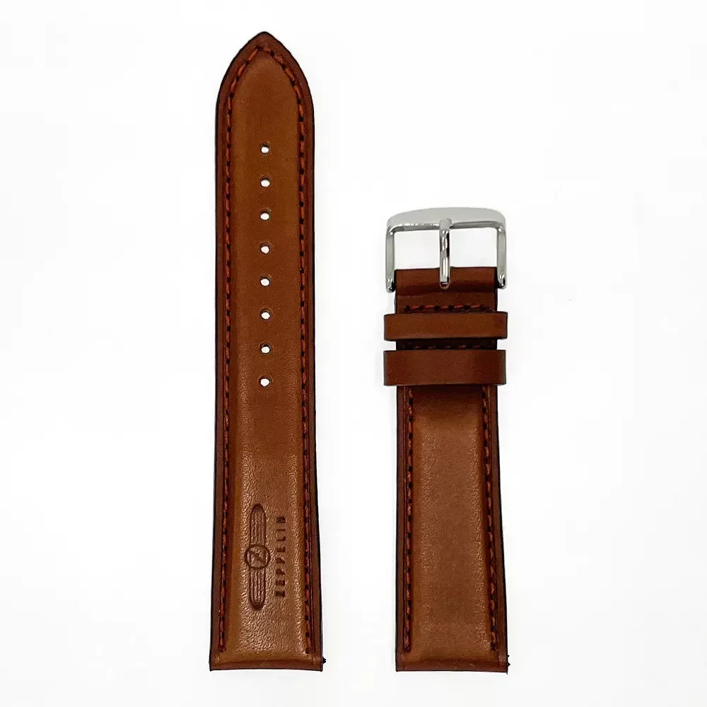 Az eredeti Zeppelin 22 mm-es fine calf skin borjúbőr óraszíj núd barna árnyalatban acél csattal.
